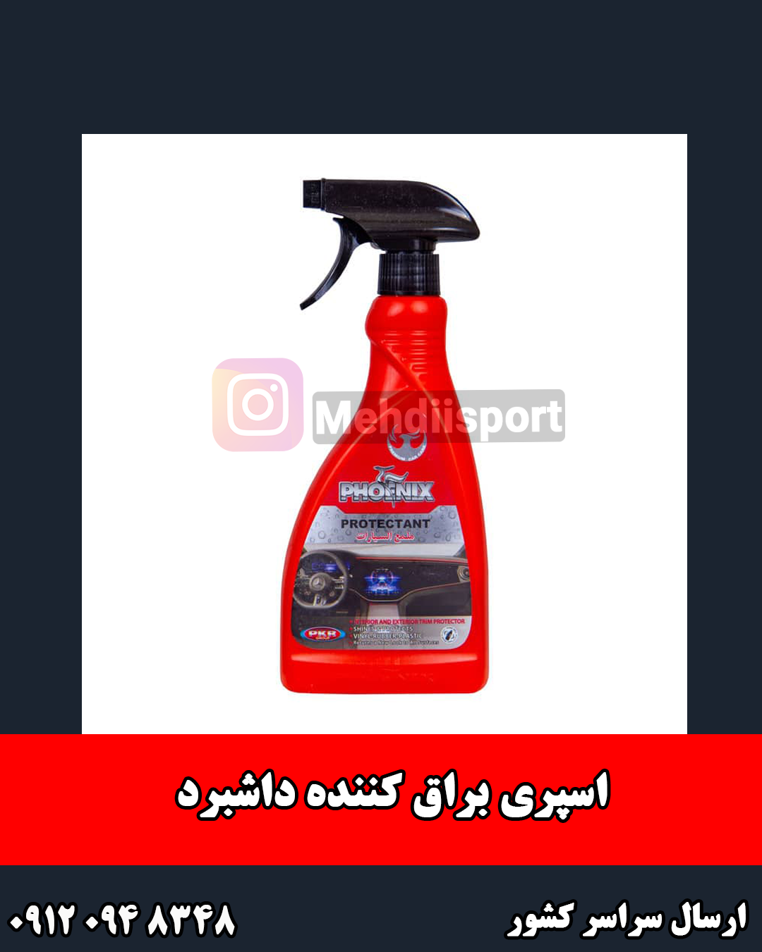 اسپری براق کننده داشبرد فونیکس با کیفیت و ماندگاری بسیار بالا از جمله محصولاتی است که طرفداران زیادی دارد. این محصول باعث براقیت بدنه شده و یک لایه محافظتی میباشد.اسپری براق کننده فونیکس به دلیل تولید تحت شرایط استاندارد ، بسیار با کیفیت بوده و هیچ گونه اسیبی به بدنه خودروتان وارد نمیکند. این محصول هم باعث براقیت رنگ بدنه خودروتان میشود و هم یک لایه محافظتی است که از افتادن خط و خش های ریز به بدنه جلوگیری میکند. توجه داشته باشید که باید اول بدنه خودروتان را تمیز کرده و بعد از این محصول استفاده کنید. ابتدا کامل به هم بزنید و به قسمتی از بدنه خودروتان بپاشید و توسط پنبه بر روی بدنه پراکنده کنید یا بمالید و بعد با استفاده از دستمال تمیز کنید. توجه داشته باشید بعد از این که بر روی بدنه پخش کردید بیش از یک دقیقه نماند و با دستمال تمیز کنید.