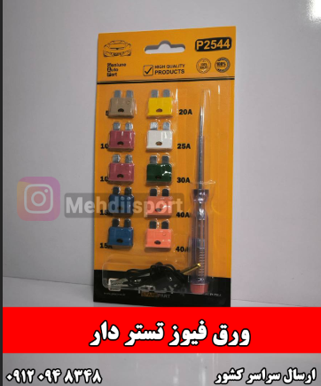 فیوز بزرگ به همراه تستر :نحوه استفاده از این تستر فیوز خودرویی به این صورت است که ابتدا گیره را به بدنه خودرو متصل کرده و سپس از طریق اتصالنوک تستر به فیوز و روشن شدن چراغ آن از سالم بودن آن اطمینان حاصل خواهد شد.این تستر فیوز فازمتری سازگار با ولتاژهای 6 ، 12 و 24 ولت می باشد.همراه این تستر فیوزهای شیشه ای پهن با میزان جریان 3 ، 5 ، 10 ، 15 ، 7.5 ، 20 ، 25 ، و 30 آمپر موجود می باشد.روی فیوز ها حداکثر جریان قابل تحمل آنها درج شده است که اگر جریان بیش تر از مقدارشان به آنها وارد شود باعث می شود سیمی که از جنس سیم لحیم با نقطه ذوب پایین درون آنها قرار داده شده است ، ذوب شود و باعث قطع شدن جریان گردد .جنس محفظه ی این فیوز ها پلاستیک شفاف می باشد که باعث می شود قطع شدن یا نشدن فیوز قابل مشاهده باشد.حتما به این نکته توجه داشته باشید که قبل از باز کردن یا کار روی جعبه فیوز ، احتراق خودرو شما خاموش است.