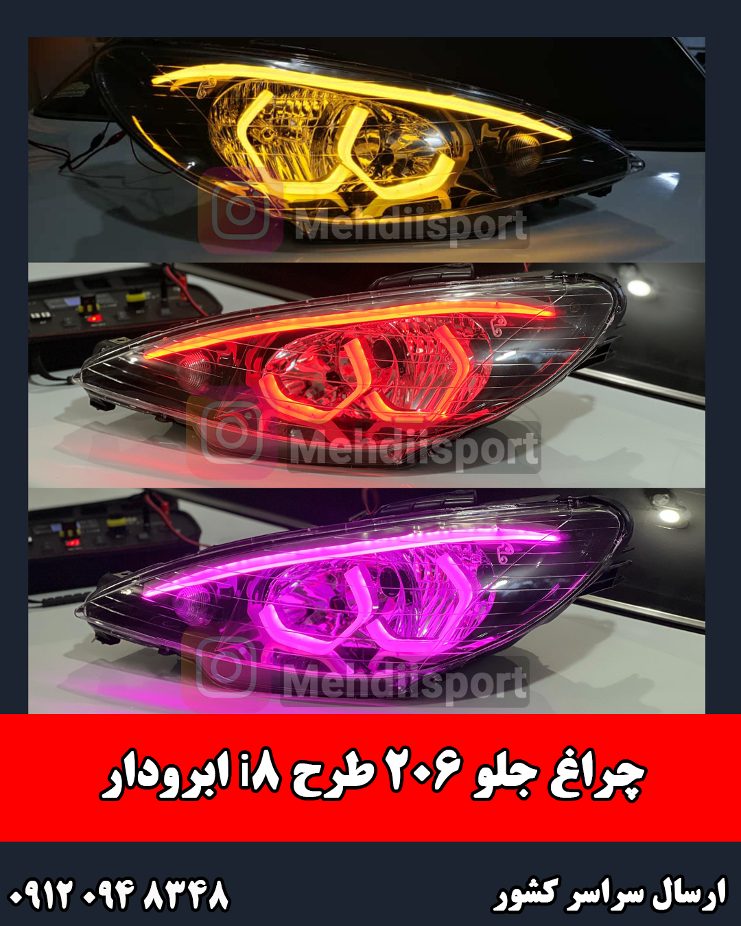 چراغ جلو 206 طرح i8 ابرودار "جفت"